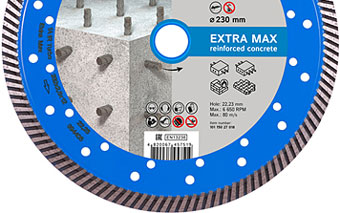Для операций по сильно армированному бетону можно подобрать алмазный диск Distar из линейки Turbo Extra Aero - она предназначена для материалов высокой твердости.