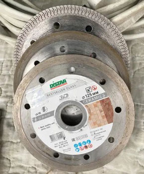 Например, если вам нужно сделать очень тонкий и ровный пропил на плитке, лучше приобрести модель Эстет (Esthete) 125 мм из премиум-сегмента с ультратонким алмазоносным слоем. кроме указанных выше размеров самыми популярными также являются 180, 200 и 350 мм.