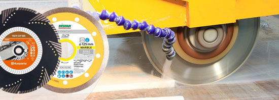 Если диски, работающие без охлаждения, могут подойти для любой техники, то оснастка для мокрого реза устанавливается лишь на агрегаты, имеющие систему охлаждения. Пользоваться таким кругом надо на открытой площадке или в помещении, специально оборудованном под систему охлаждения.