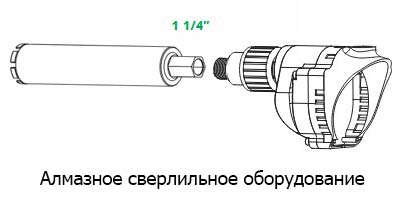 Диаметр 152 мм относится к крупным размерам, поэтому рекомендуется использование мотора алмазного бурения, установленного на стойку алмазного сверления. Жесткая фиксация обеспечивает точное позиционирование и устойчивость при глубоком сверлении.