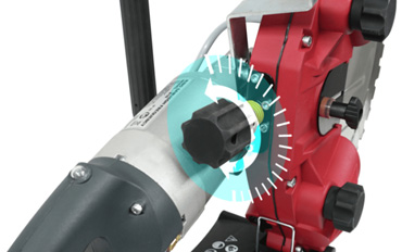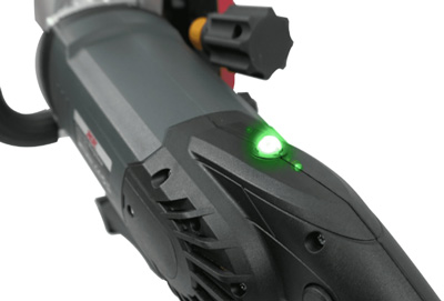 Световой индикатор отображает нагрузку на двигатель и своевременно сигнализирует о превышениях. Режущее полотно автоматически отцентровывается в процессе работы, что существенно сказывается на точности пропила. Автоматика мгновенно прекращает вращение полотна при отключении, чтобы обезопасить оператора.