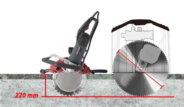 Диаметр его составляет 330 мм, а максимальная глубина резки достигает 220 мм. Замена диска производится довольно просто и не требует съема крышки, что значительно сказывается на производительности труда при профессиональном использовании.