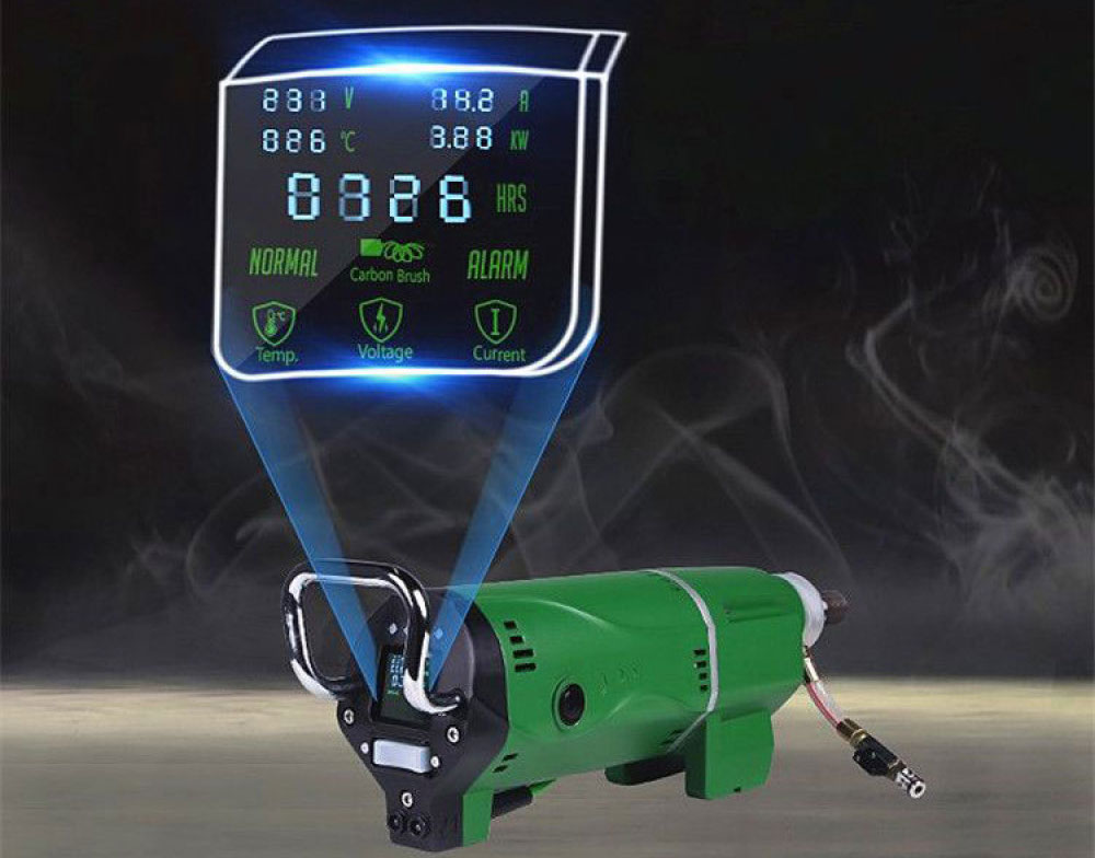 Алмазный сверлильный двигатель BYCON 352 применяется в ходе проведения ремонтно-строительных работ для бурения отверстий диаметром от 45 до 400 мм. Три рабочие скорости (350, 700 и 1100 об/мин) позволяют добиться идеального результата при работе на разных поверхностях. Данная модель отличается наличием специального LCD-дисплея, на котором отображаются рабочие параметры (входная мощность, напряжение сети, сила тока, отработанные моточасы и рабочая температура) для наилучшего контроля работы аппарата, его своевременного обслуживания и эффективной работы на протяжении длительного времени. Особая электро безопасность (изоляция, защита проводника и защита включения) гарантируют максимальную безопасность эксплуатации и предотвращают поражение оператора током.