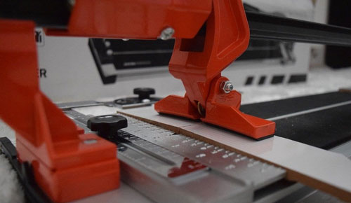 - Удобство эксплуатации. Конструкция плиткореза достаточно проста. Он состоит из единственного монорельса, по которой на подшипниках двигается каретка с режущим роликом. Поэтому машиной могут легко пользоваться не только профессионалы, но и начинающие мастера, не имеющие соответствующего опыта.