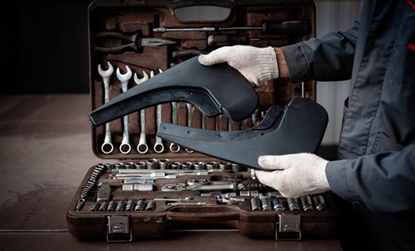 В первую очередь нужно выбрать подходящий тип крепления — заводской, на саморезах (болтах) или универсальный. В процессе монтажа нужно совместить отверстия, приложить брызговик к арке и закрепить его. Важно не допускать люфта и/или перекоса.