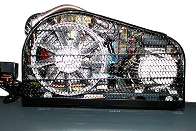 Компрессор оснащен однофазным электродвигателем мощностью 2200 Вт (3 л.с.), работающим от сети 230 В с частотой 50 Гц. Медная обмотка двигателя, активное принудительное охлаждение и увеличенные ребра теплообменника на поршнях обеспечивают стабильную работу даже при высоких нагрузках.