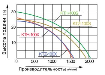 Помпа KTH-100S обладает способностью перекачивать жидкостные смеси на максимальной скорости 2050 л/мин, выталкивая ее на высоту до 30 м.