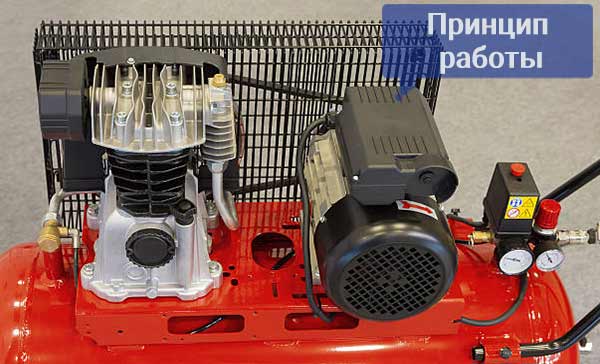 Принцип его действия во многом схож с обычным насосом. Условно процесс сжатия происходит следующим образом: