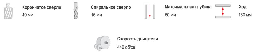 | Максимальный диаметр сверления фрезой: | 40 мм |