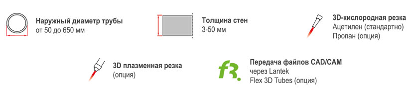 Машина для пространственной резки труб с ЧПУ PPCM 650 представляет собой инновационное устройство, способное выполнять точную резку и фаску труб. Ее программируемая система позволяет использовать как плазменный, так и кислородный метод резки. С таким оборудованием можно работать с трубами диаметром от 50 до 650 мм и длиной до 12000 мм. Встроенное программное обеспечение обладает интуитивно понятным интерфейсом, что делает использование машины удобным и эффективным, не требуя длительного обучения.