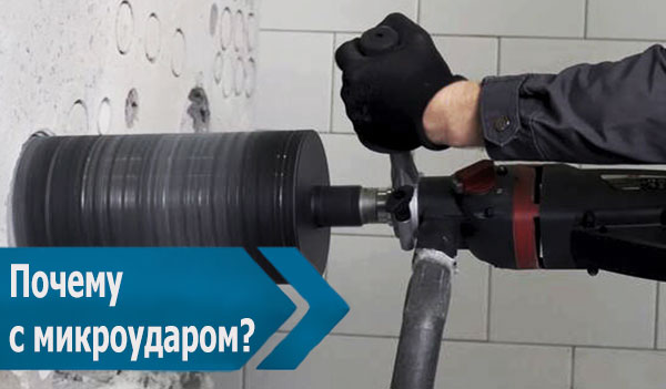 Когда выполняется сухое бурения инструмент работает более эффективно с использованием микроудара. Преимущества такого метода: