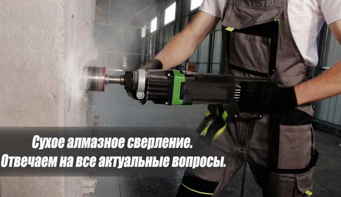 Сухое алмазное сверление – это технология подготовки технологических отверстий на участках, где по какой-либо причине невозможна подача воды для охлаждения оборудования и удаления пыли. С ее помощью можно без проблем пробурить каналы в кирпичной кладке, бетонном перекрытии, керамогранитных покрытиях и т.д. Главное правильно подобрать инструмент и расходники, чтобы избежать перегрева и слишком частой смены сверл.