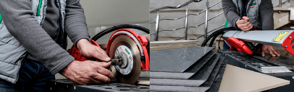 Станочная. Тут речь идет о стационарных установках. На них можно выставить глубину среза, угол и даже скорость вращения. В итоге получаем максимально производительный способ: и скорость выше, и край получается идеально ровным, плюс легко повторять результат на каждой заготовке. Это позволяет не заморачиваться, каким диском шлифовать керамогранит.