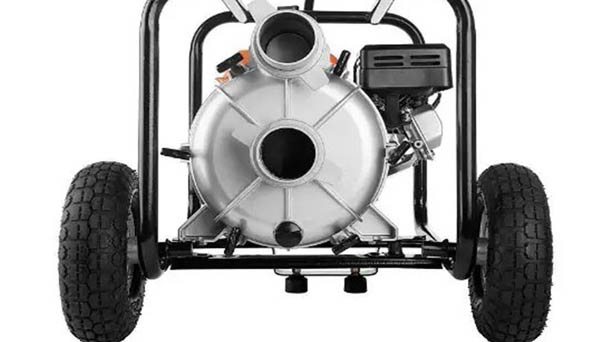Поскольку в большинстве случаев мотопомпа имеют относительно большую массу, то для удобства ее перемещения удобно, чтобы ее конструкция была оснащена колесами для транспортировки.