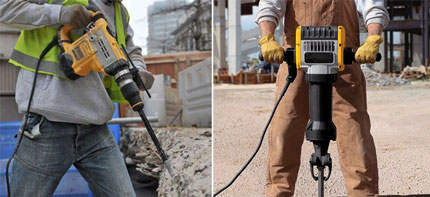 Електричні. Пристрої такого плану оснащені електромотором, що приводить у дію бойок у блоці апарату. Моделі невеликі, легкі, залежні від електромережі. Електричні відбійні молотки dewalt не можна використовувати в місцях, де високі ризики займання.