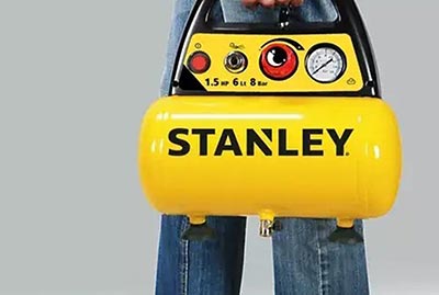 STANLEY DN 200/8/6 - побутовий поршневий компресор безмасляного типу з прямим приводом, розрахований на роботу від однофазної мережі 230 В. Модель виконана в компактному переносному форматі і призначена для періодичного використання в умовах гаража і дачі.