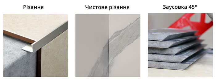 - Різання плитки під 45 градусів – засувка для якісного стикування облицювання з кутами та колонами.