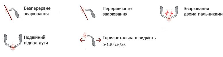 Функція програмування дозволяє задавати параметри траєкторії та режиму зварювання: довжину шва, довжину пропуску (skip), а також заповнення кратера на початку і в кінці проходу. Це забезпечує точну відповідність технології зварювання заданим вимогам і повторюваність результату.