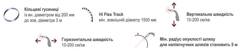 Можливість зварювання та різання з мінімальним радіусом 100 мм демонструють високий рівень точності та майстерності.