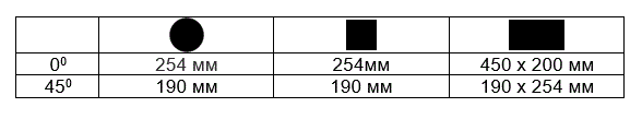 - Квадрат: до 254х254 мм при 90 град, до 190х190 мм при 45 град